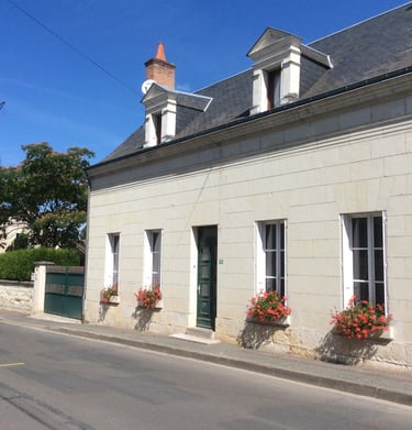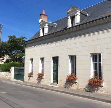 Maison en tuffeau avec 4 meublés, parking privé, jardin clos et espace détente.